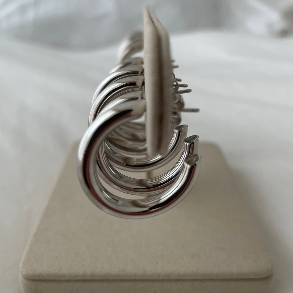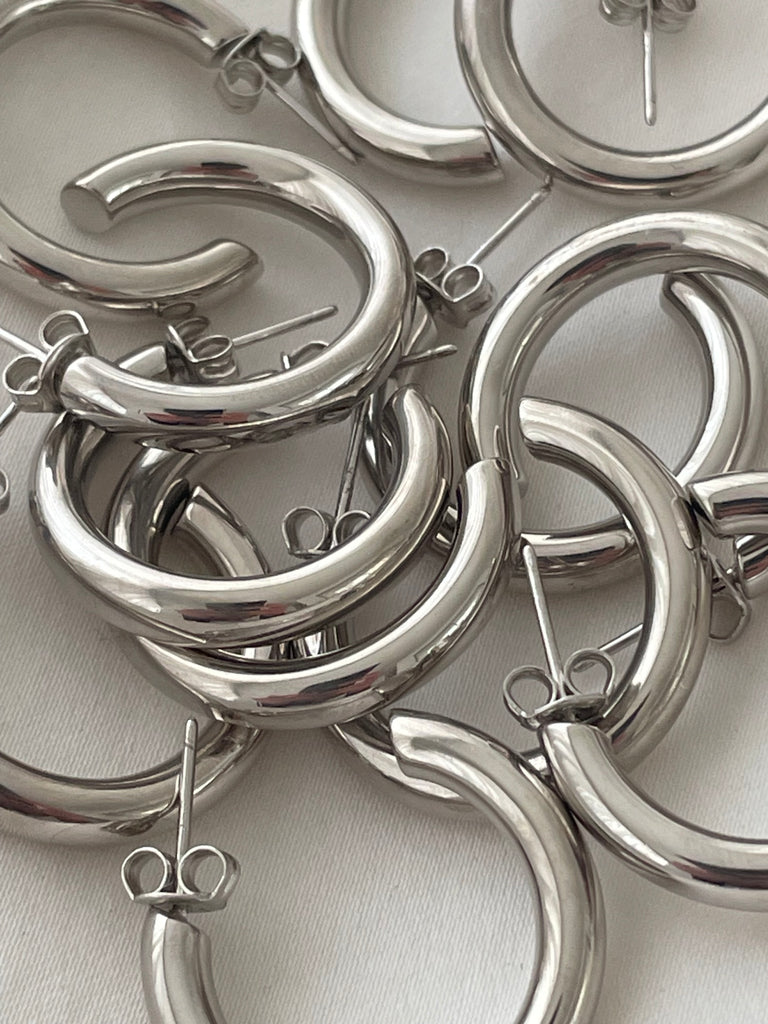 These Mini Hannah Hoops in sterling silver are a must-have! Their chunky style adds a bold, strong touch to any outfit. They're effortlessly stylish and perfect for any fashion-forward individual.