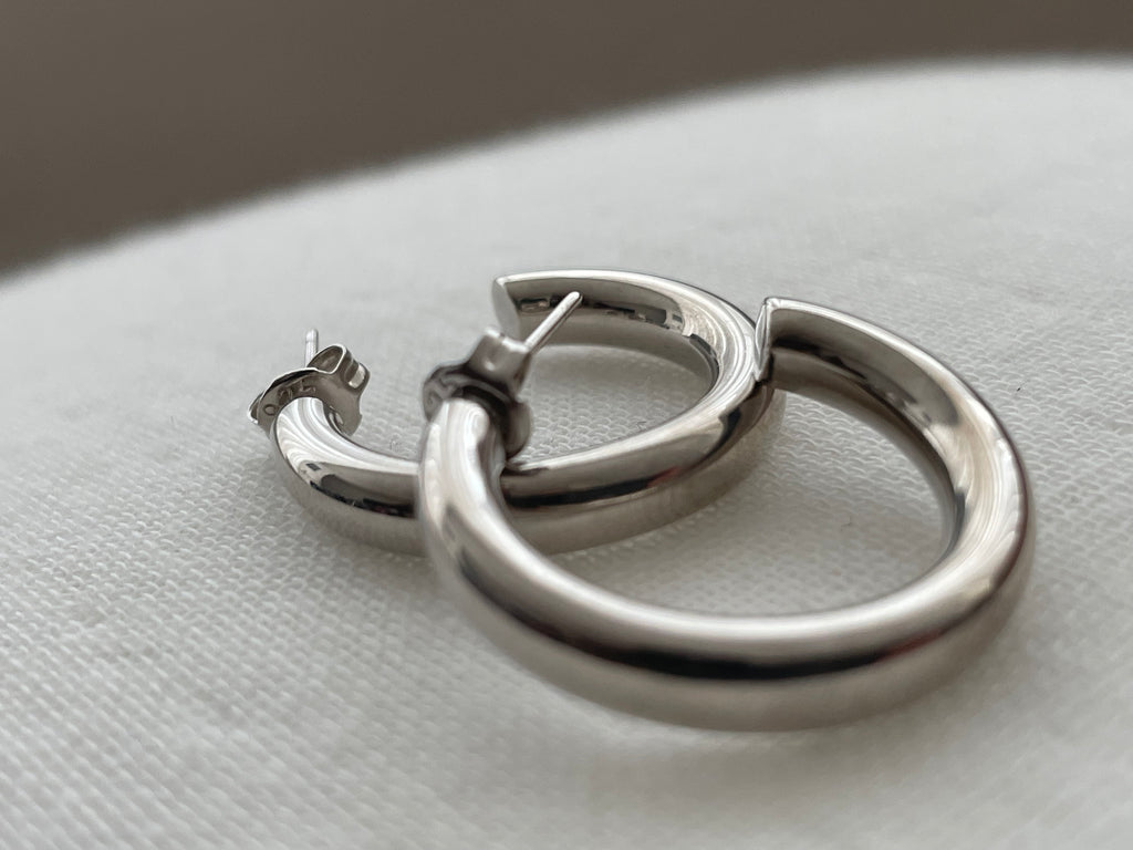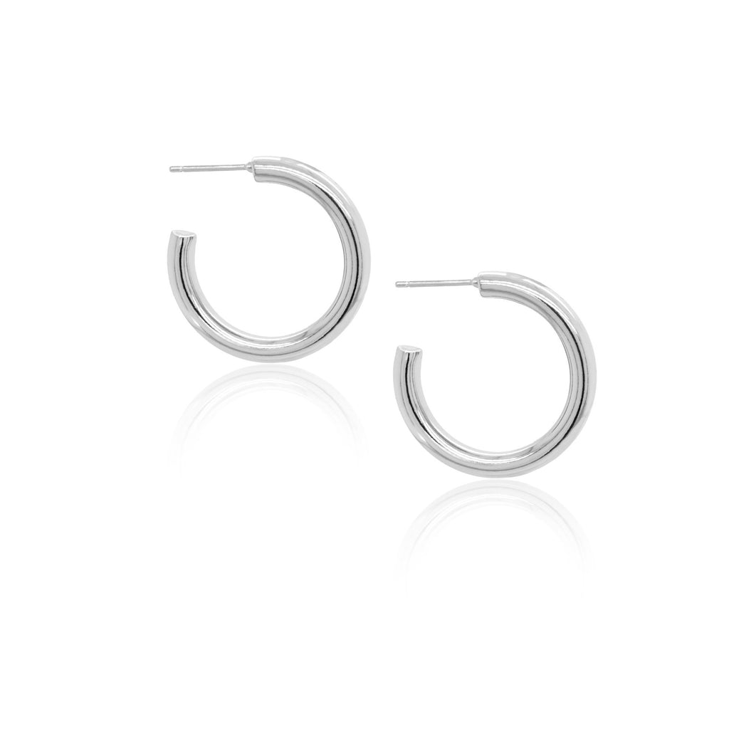 Material: 925 Sterling Silver and dipped in rhodium, the Mini Hannah Hoops feature the rare and precious properties of this metal.
