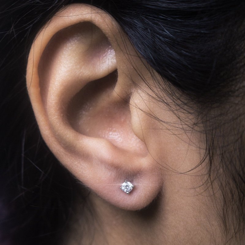 Material: 925 Sterling Silver Rhodium stud earrings featuring a TCW 0.2ct lab diamond solitaire.