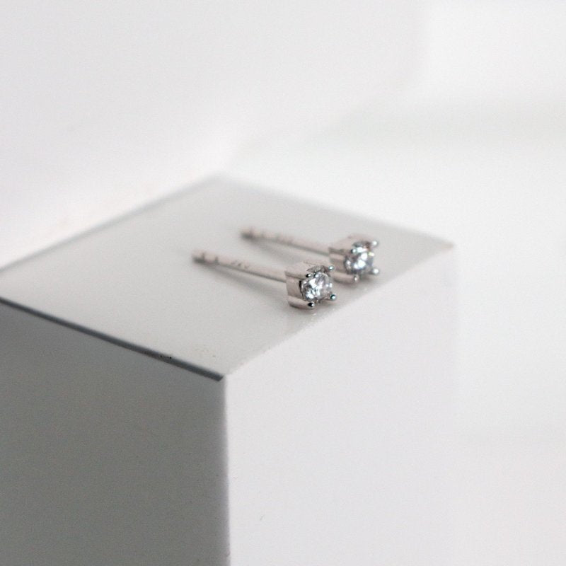 Dionne Solitaire Studs 3mm // Sterling Silver + 0.2ct Diamond