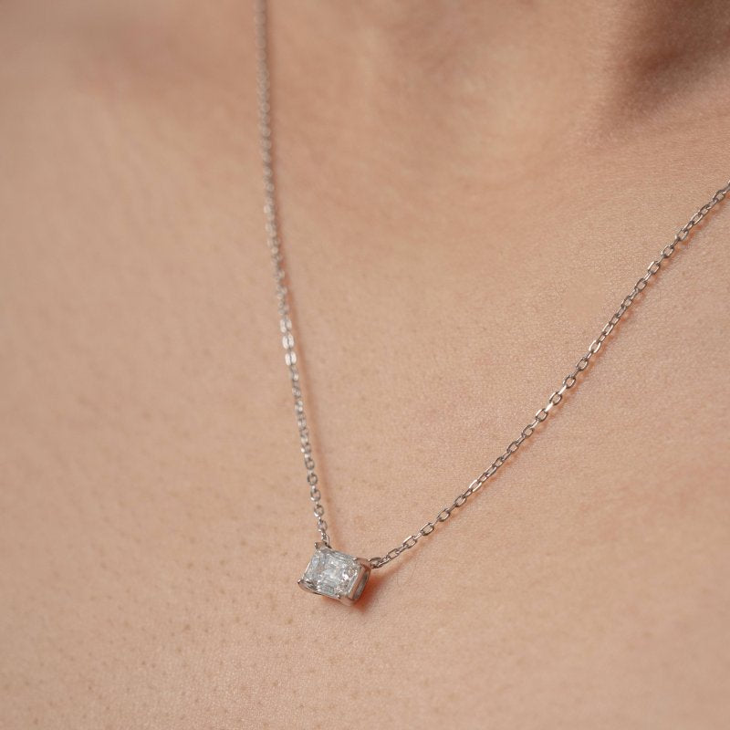 Naomi Emerald Cut Necklace // Rhodium Plated Sterling Silver + 1ct Diamond